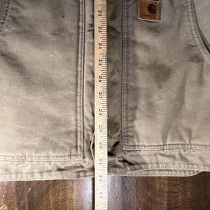 Carhartt Denim Jacket RN#14806 Mens Size XL Brown Fleece Lined Distressed Logo