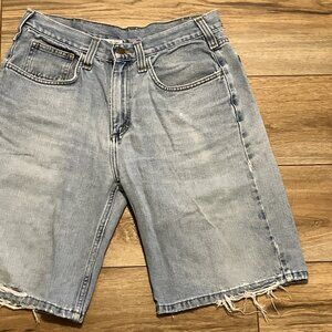 Men's Carhartt Destroyed Denim Jean Shorts SZ 32x10 Blue B354 LCW Dad Jorts Grunge