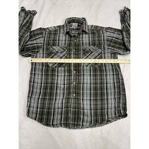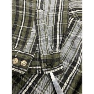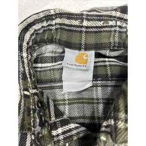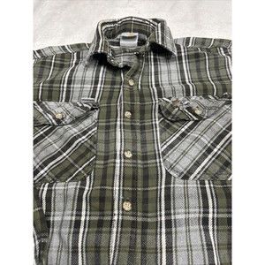Carhartt Distressed Grunge Gray & Green Plaid Flannel Shirt Men's Size Large