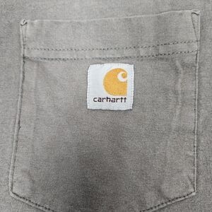 Features gray distressed and bleached cotton tee-shirt t-shirt, Short sleeves, Rib knit crew neck, Left chest classic patch pocket with Carhartt logo label, Side-seam construction minimizes twisting, Tag less neck label, work Tee-Shirt t-shirt, heavyweight.