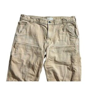 Carhartt Pants Mens 36x32 Beige Rugged Flex Relaxed Fit Canvas Workwear Double Knee BN2802-M Distressed