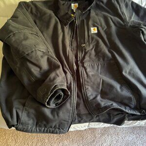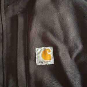 Classic and durable Carhartt work jacket built to handle tough jobs and cold weather. Made from heavyweight duck canvas with a warm quilted lining. Features full front zip, rib-knit cuffs and hem, and Carhartt logo patch on the chest.