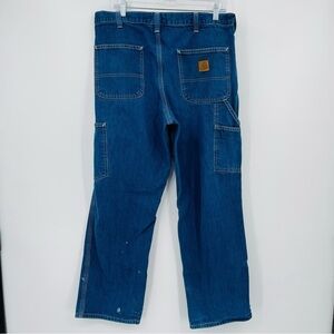 Carhartt Dungaree Fit Jeans Mens 34 Blue Carpenter Utility Workwear Cotton
