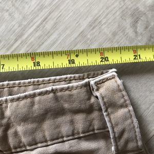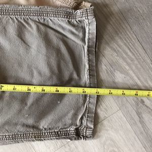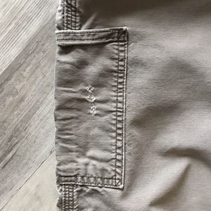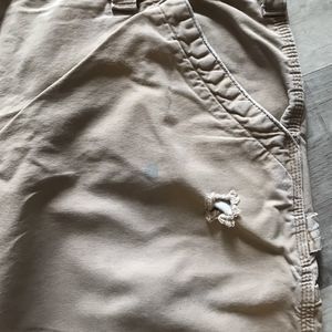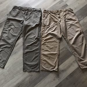 Both pr have holes on the thigh pockets. Tan pants have some stains as shown in photos.