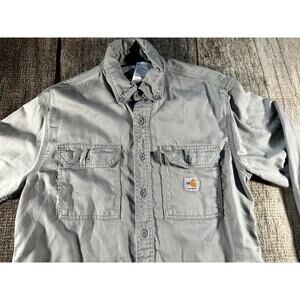 Carhartt Fire Resistant Mens Gray Long Sleeve Button Down Cat 2 Shirt. Size medium. In good used condition!