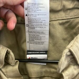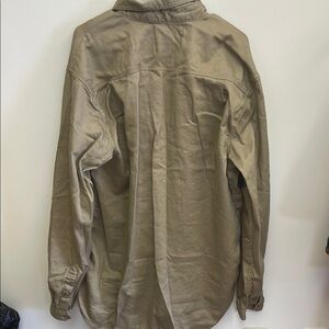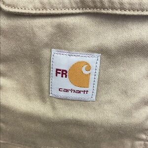 Stylish Carhartt FR button-up shirt in tan. Features dual chest pockets with logo detail.