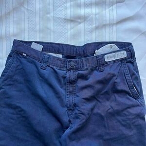 These Carhartt FR work pants are built for industrial durability and safety. Made in a classic navy blue, they feature a comfortable straight-leg fit and reinforced construction suitable for demanding work environments. Designed originally for uniform service, these pants are dependable, easy to wear, and made for everyday jobsite use. A great staple pair for electricians, industrial workers, welders, and anyone needing compliant flame-resistant gear.