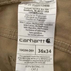 Carhartt Flame Resistant Cat 2 Tan Canvas Work Pants 5 Pocket Size 36 x 34
