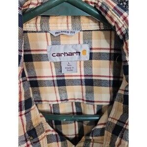 Carhartt Flannel Button Up Shirt Men's Size Large Tall Relaxed Fit Tan Black