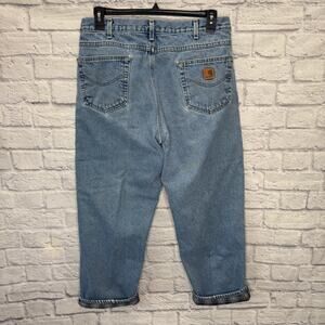 Carhartt Flannel Lined Mens 35x28 Jeans Relaxed Fit Straight Leg Light Wash