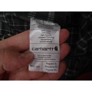 The Carhartt Flannel Long Sleeve Shirt in Men's XL size is a classic and versatile piece perfect for casual and workwear occasions. Made from comfortable cotton flannel material, this green plaid shirt features a collared neckline, button closure, and spread collar style. With original fit and a spread collar style, this shirt is designed for regular size men and is a perfect addition to any wardrobe, especially for those who appreciate outdoor or classic themes. The Carhartt brand ensures quality and durability, making this shirt both stylish and practical for everyday wear.