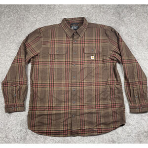 Carhartt Flannel Shirt Mens 2XL Tall Loose Fit Plaid Cotton Utility Brown