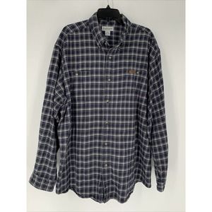 Carhartt Flannel Shirt Mens XXL 2X Blue Plaid Button Up Outdoor Workwear