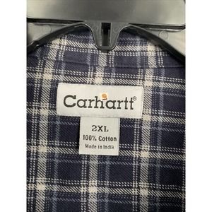 Carhartt Flannel Shirt Mens XXL 2X Blue Plaid Button Up Outdoor Workwear.