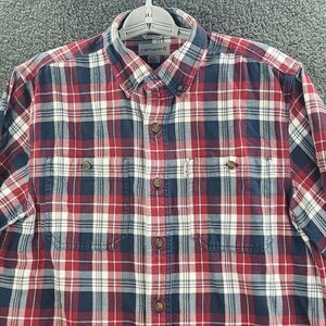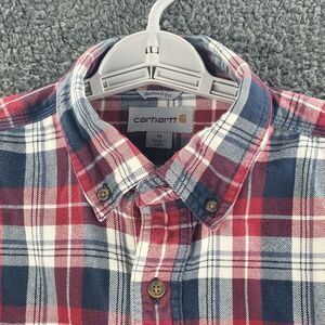 Carhartt Flannel Shirt Red White Blue Mens Medium Plaid Relaxed Fit Work Wear