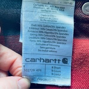 Stay warm and stylish in these durable Carhartt straight leg jeans, lined with cozy red and black plaid flannel. Perfect for cooler weather, whether you're outdoors or just looking for a rugged, layered look.