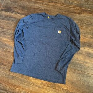 Experience the perfect blend of comfort and style with the Carhartt Blue Long Sleeve Tee. Crafted from a soft, heathered fabric, this shirt features a classic crew neckline and a subtle Carhartt logo on the chest, making it ideal for everyday wear.