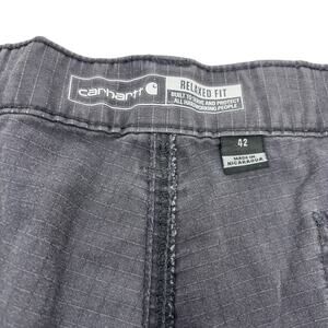 This is a pre owned Carhartt Force Mens Sz42 Bluish Gray Relaxed Fit Ripstop Cargo Work Short. This item is in good condition with minimal or no signs of use.