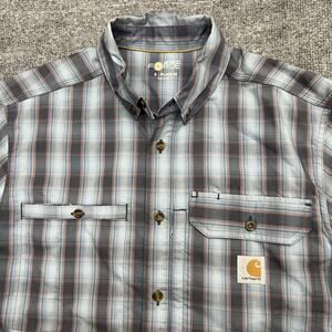 Carhartt Force Shirt Mens Small Gray Red Plaid Relaxed Fit Short Sleeve Workwear