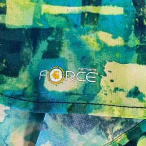 Carhartt Force Womens Scrub Top Green Multicolor Abstract Stretch Nursing Medical M