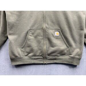 Carhartt Full Zip Fleece Hoodie Men Loose Fit Pockets Olive Green Worker Size XL