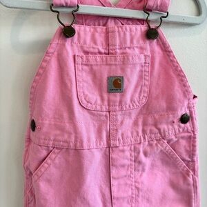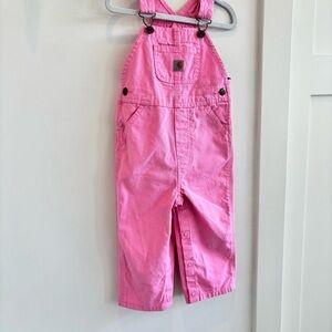 Carhartt Girls Pink Bib Overalls Adjustable Strap Buckle Pockets Size 18 month