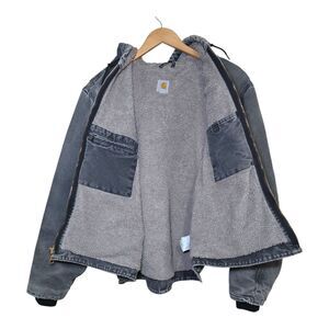 Carhartt Gray Duckwash Zip-Up Hooded Sherpa-Lined Jacket Size 2XL