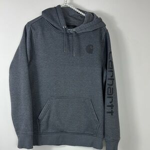 Carhartt Gray Relaxed Fit Medium Weight Hoodie Sweatshirt Logo Sleeve Medium