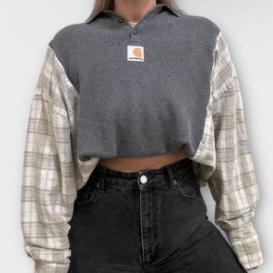 Carhartt Gray Reworked Sweater Loose Knit Casual Cozy Relaxed Flannel Shirt Top