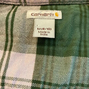 Plaid flannel by Carhartt. Features button-up front and chest pockets. Perfect for casual wear.