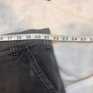 These are perfectly distressed Carhartt Grey Rugged Flex Relaxed Fit Canvas Flannel-Lined Utility Work Pants size 42x30. There are a couple of of holes but they add character. Flannel lining will keep you warm while you work or party.