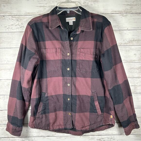 Carhartt Grunge Rugged Flex Fleece Lined Flannel Shirt Purple Plaid M (8/10)