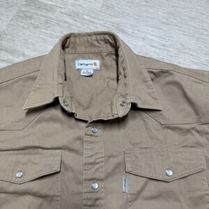 Carhartt Heavy Canvas Pearl Snap Western Button Up Shirt Mens L Beige Workwear