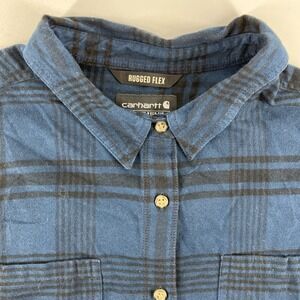 Carhartt Heavyweight Flannel Rugged Flex Relaxed Fit Plaid Button Up 3XL Navy