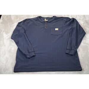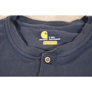 Carhartt Henley Shirt Mens Large Tall Navy Blue Long Sleeve Pocket Workwear