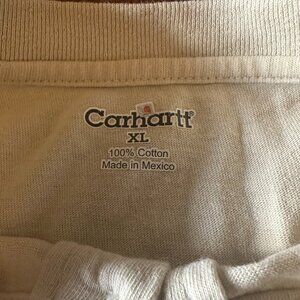 Carhartt Henley T-Shirt XL Cream 100% Cotton Workwear Pocket Made in Mexico