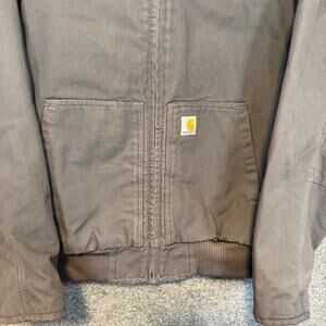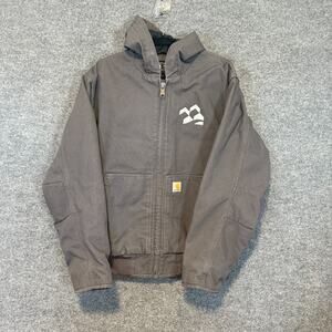 Carhartt Hooded Canvas Jacket J130-M Mens Large Gray Lined Loose Fit Logo