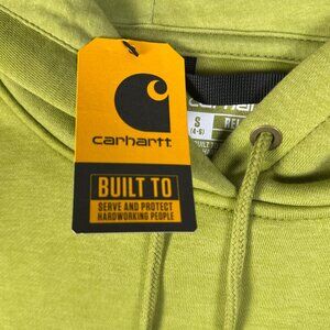 Carhartt Hoodie Womens Small Olive Green Relaxed Fit Midweight Spellout Workwear