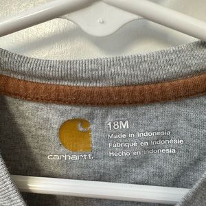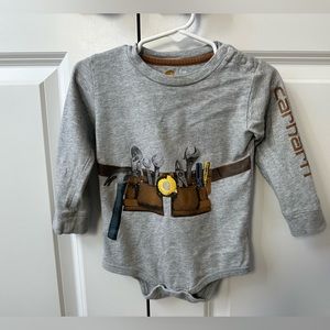 Carhartt Infant Toolbelt Long Sleeve Onesie in Size 18 Months. This is in excellent, very gently used condition, with no flaws to note.