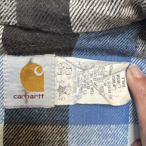 Carhartt Vintage Blue Denim Flannel Lined Hooded Jacket JF858 Large Tall USA Made