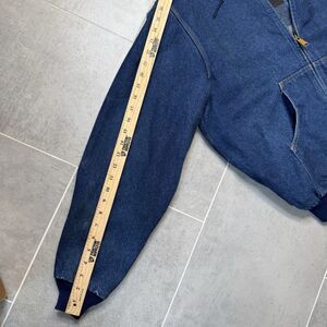 Carhartt JF858 Vintage Blue Denim Flannel Lined Hooded Jacket USA Made L Tall