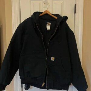 Carhartt Jacket Black Vintage Hooded Full Zip Quilted Lined XL J140
