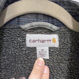 Carhartt Jacket Mens Medium Gray Blue Plaid Sherpa Lined Shirt Coat