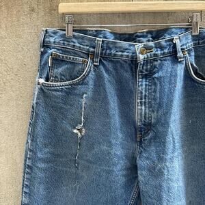 Carhartt Jeans Carpenter Denim Distressed Relaxed Fit Flannel Lined Blue Size 38