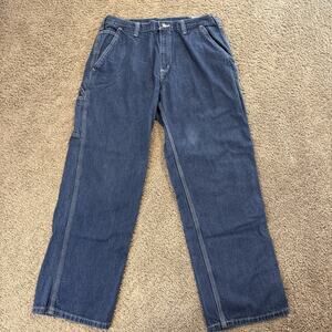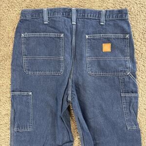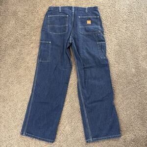 Carhartt Jeans Mens 34x30 Blue Denim Dungaree Fit Carpenter Work Pants B13 DST
