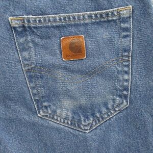 Carhartt Jeans Mens 34x30 Blue Denim Relaxed Fit Straight Work 381-83 Distressed