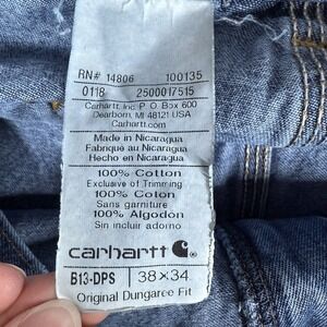 Carhartt Jeans Men's 38x34 (Fits 36x32) Blue Original Dungaree Fit Carpenter B13