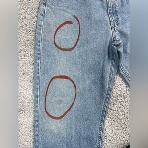 — Condition: Good. See small discolorations on right pant leg circled in red