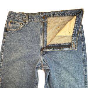 Embrace the classic durability and comfort with these Vintage Carhartt B17 DST Relaxed Fit Jeans. A perfect blend of functionality and style, these jeans feature a cotton denim construction, ensuring they're ready to tackle any rigorous activity. The faded blue hue gives off a timeless vibe, while the high-rise waist and straight leg cut provide a comfortable, relaxed fit. Equipped with a practical 5-pocket design, these jeans are ideal for keeping essentials within reach. The combination of a button and zip closure ensures a secure fit, making them suitable for a tag size 40 waist with a 34-inch inseam. Machine washable and easy to care for, they're an everyday go-to for those who value quality and convenience.