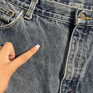 Condition: Fair used condition. Noticeable wear and fading throughout. Fraying at both leg hems and a visible stain on the front left leg (see close-up photos). Overall heavy wear but still plenty of life for workwear or casual use.